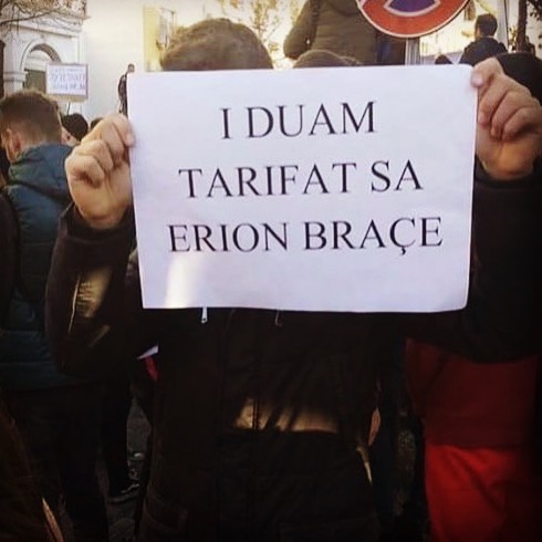 Kësaj here kreu i qeverisë ka komentuar në Instagram një nga pankartat e studentëve, në të cilën shkruhej se “i duam tarifat sa Erion Braçe”, si pjesë e thirrjeve për uljen e tarifave të universiteteve.