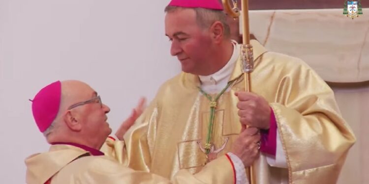 Imzot George Frendo i kalon sot detyrën e Arqipeshkvit të Kishës Katolike, Imzot Arjan Dodaj, ndërsa në fjalën e tij në ceremoni, ai shprehu besimin se Dodaj do ta kryej më së miri këtë punë. Imzot George Frendo tha se shqiptarët dhe Shqipëria do të jenë gjithmonë në zemrën e tij, por shtoi se iu duk e drejtë që vitet e fundit të jetës së tij t’i kalojë në vendlindje.