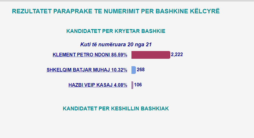 Ja rezultatet deri tani ne Bashkine Kelcyre, ku Kasa eshte kandidat