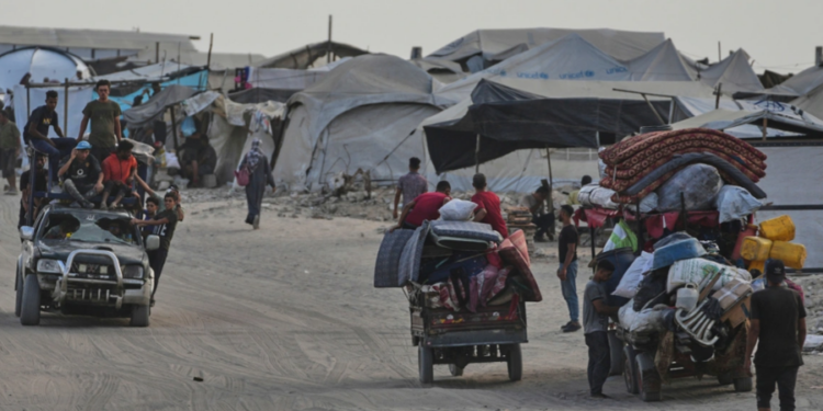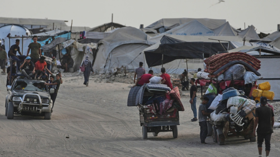 Në qytetin e Gazës, familjet janë rikthyer në rrugë, duke mbajtur bagazhe dhe dyshekë në biçikleta dhe karroca për tu zhvendosur.