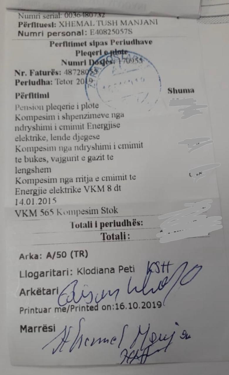 Në dokumentin e mëposhtëm shihet i ati i Manjanit, Xhemal Manjani, e ka marrë pensionin që në datën 16, pra ka afro 2 javë.