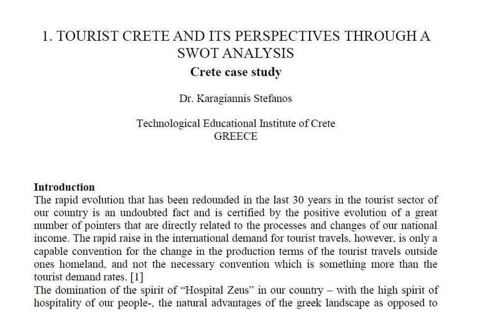 Touris Crete and its perspectives through a SWOT analysis- Crete case study