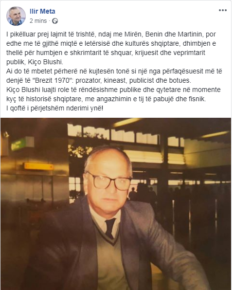 Kreu i Shtetit, Ilir Meta ka shprehur ngushëllimet për vdekjen e shkrimtarit dhe skenaristit Kiço Blushi.