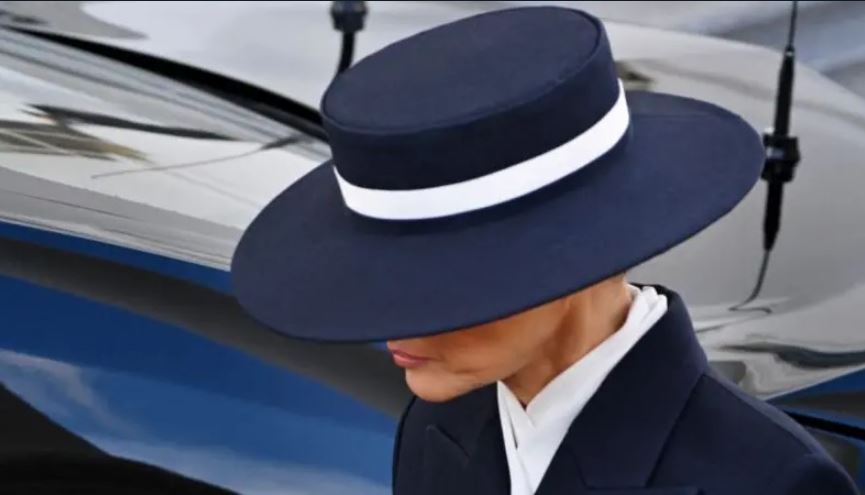 Por ndërsa disa kapele ndihen si një shtesë për një veshje, të tjera marrin më shumë energji të personazhit kryesor – siç bën sot Melania Trump. “Buza” e kapelës është mjaft e gjerë dhe kontrasti midis fjongos krem dhe kapelës marine është mjaft i madh sa të tërheqë pamjet – edhe nëse sytë e Melanias janë poshtë.