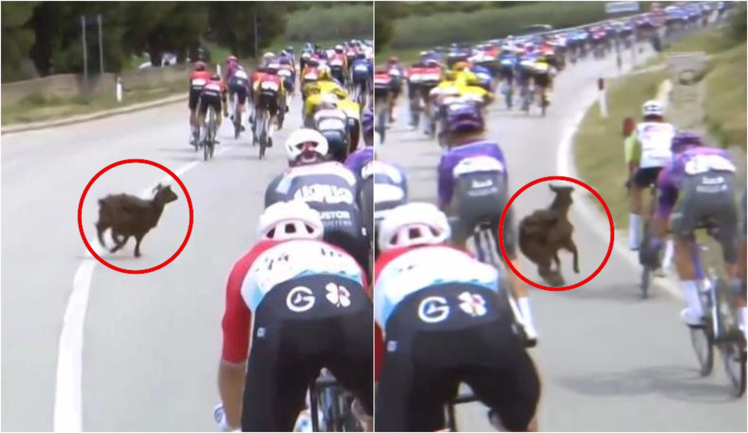 Attraversamento inaspettato e per fortuna senza conseguenze di una capra durante il passaggio del gruppo #EurosportCICLISMO #Cycling #GirodItalia #Giro #Goat pic.twitter.com/AvoiEFvrB4