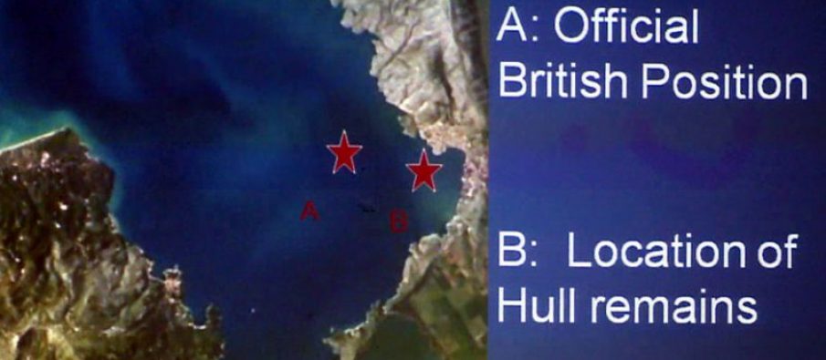 “Mbetjet e anijes nuk janë gjetur në mes të Kanalit të Korfuzit. Pika A është pozicioni zyrtar i flotës britanike, ndërsa pika B tregon vendin ku ne kemi gjetur mbetjet e anijes britanike. Pika B është një pikë ku mundet të shkosh sepse rruga të çon rastësisht aty, pra një kanal përmes të cilit duhet të kalosh. Është një pikë që arrihet duke bërë një lëvizje provokative, çka na bën të mendojmë se lëvizja ka qenë e qëllimshme, për t’iu afruar kufirit për të kërcënuar Shqipërinë”, shprehet Goold.