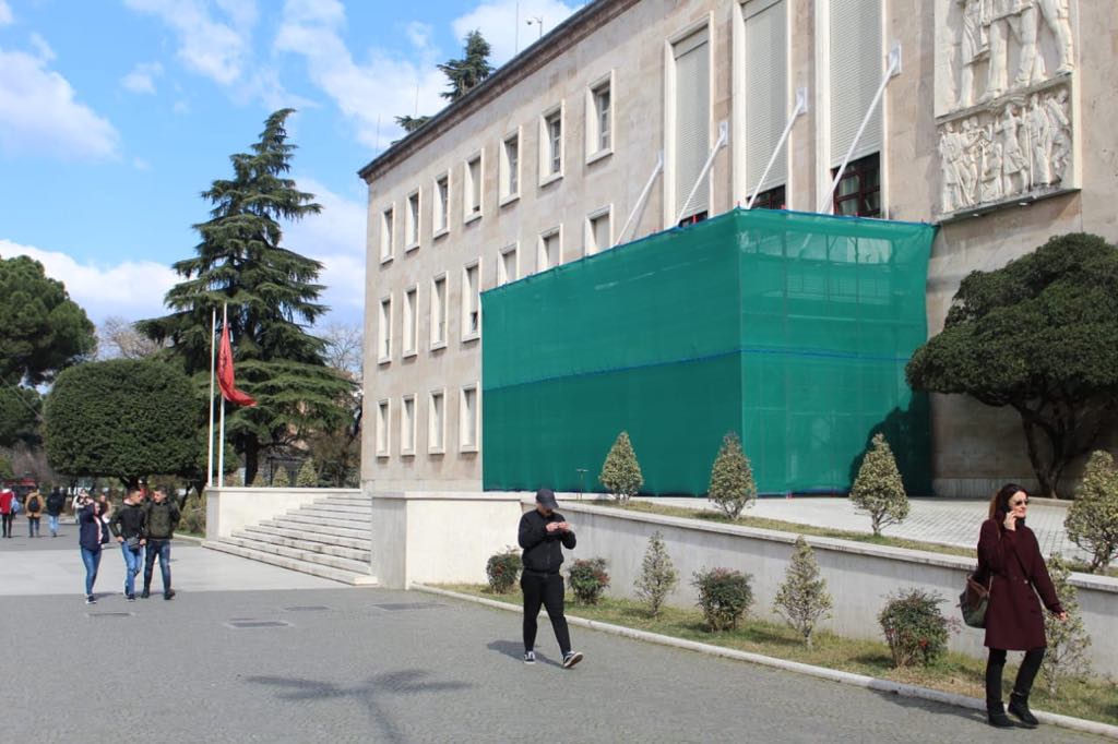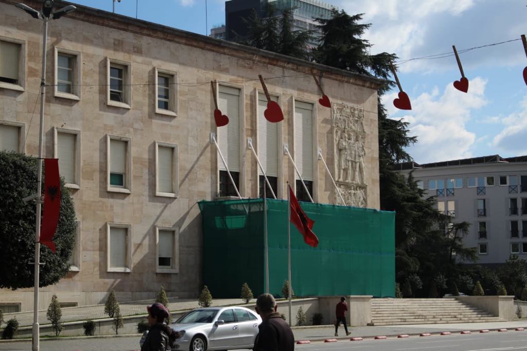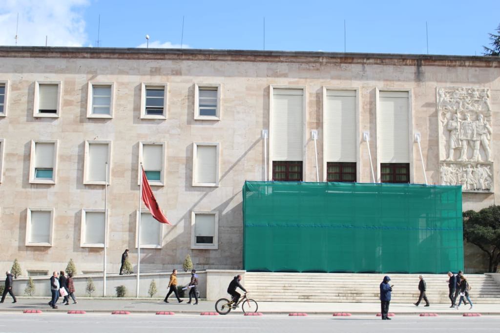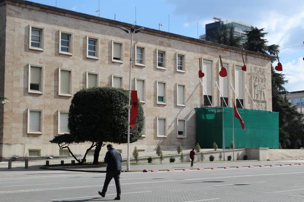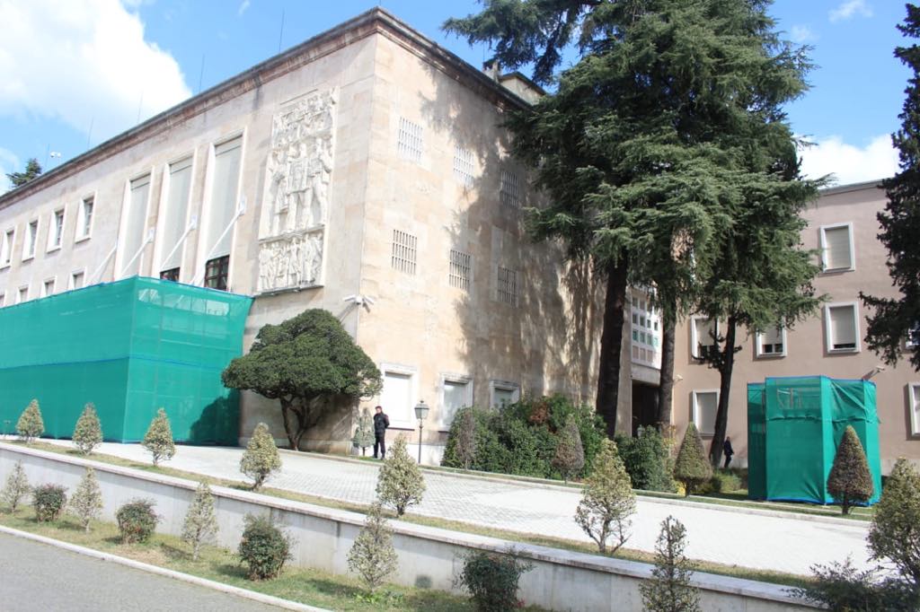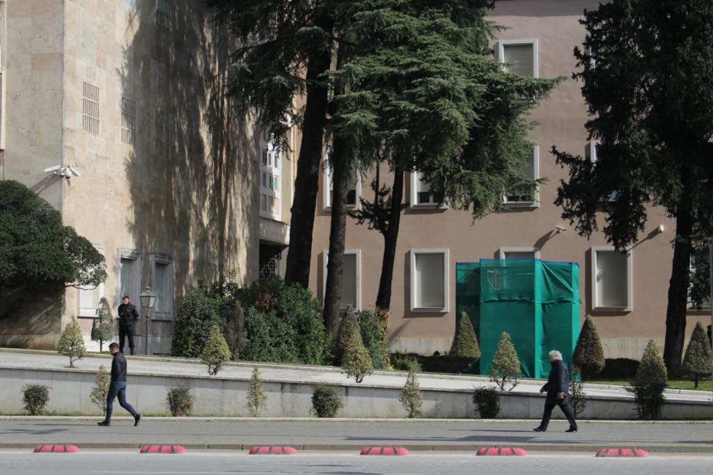 Siç shihet dhe nga fotot, stafi i kryeministrisë të izolojë hyrjen kryesore të Kryeministrisë si dhe kërpudhën që ndodhet në oborrin anash godinës.