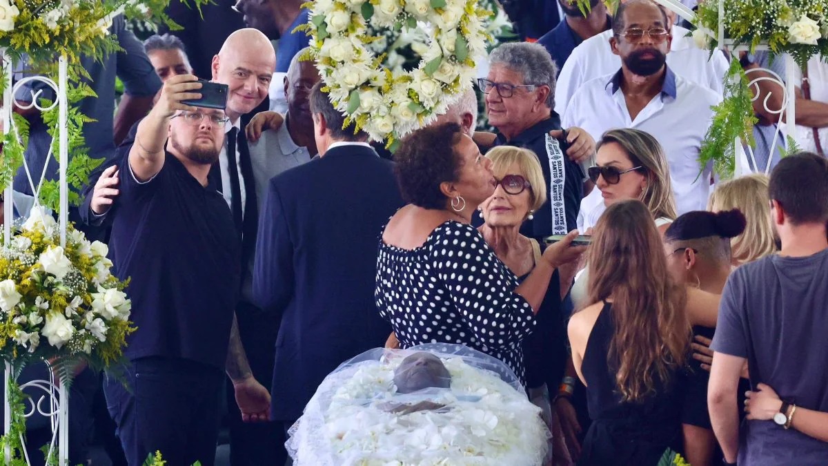 Në stadiumin e Santosit, i cili u bë destinacion pelegrinazhi për një ditë, për t’i bërë nderimet e fundit “O Rey”, që vdiq në moshën 82-vjeçare, ishte edhe numri një i futbollit ndërkombëtar. Dhe përshtypja që merr nga imazhet e nxjerra gjatë ritualit publik, sigurisht që nuk është lajkatare.