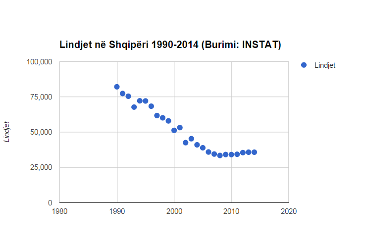 Numri i fëmijëve nën 14 vjeç në Shqipëri në vitin 2014 ra në 547 mijë vetë, 19 mijë më pak se në vitin 2013 dhe 95 mijë më pak se sa në vitin 2010, bëri të ditur Instituti i Statistikave në Vjetarin Statistikor të publikuar së fundmi. Rënia e shpejtë e numrit të fëmijëve vjen si pasojë e rënies së vazhdueshme të numrit të lindjeve, rënie që ka filluar që nga vitet ’90.