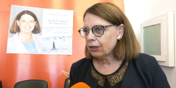 Deputetja franceze Mirelle Clapot promovoi në Tiranë edhe romanin “Nga ishulli Diomedit do të ngre këtë urë”. /e.s/