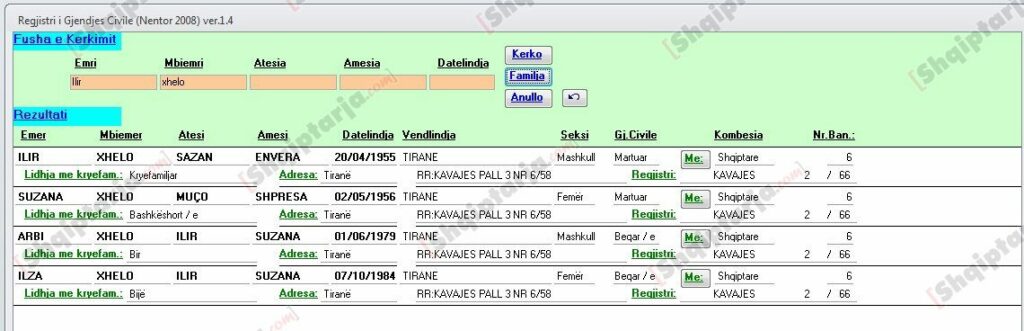 Regjistri i Gjendjes Civile ku tregon se Ilir dhe Arbi Xhelo janë përkatësisht babai dhe vëllai i Ilza Xhelo