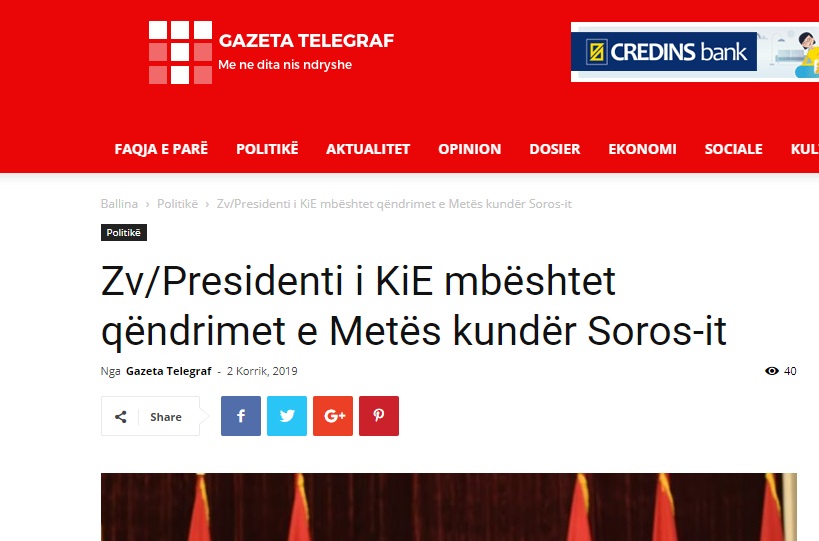 Pas daljes së Ilir Metës sot në një konference për mediat, ku ka sulmuar kë i ka dalë përpara duke nisur me SHBA-BE, gazetarë, kundështarë e duke përfunduar me filantropistin Xhorxh Soros (sikur ky i fundit po bënte komplot ndaj demokracisë në Shqipëri) mediat pranë tij dhe PD-së, janë përpjekur të sajojnë një fake news (lajm të rremë) për të krijuar idenë se fjalimi i Metës sot, ka mbështetje nga KiE.