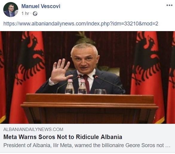 Këto media, kanë publikuar nje lajm (të cilin edhe mund ta kenë marrë gati nga paradhoma e Metës) ku pretendojnë se Zv.Presidenti i KiE Manuel Vescovi, ka shpërndare në Facebook deklaratën e Metës.