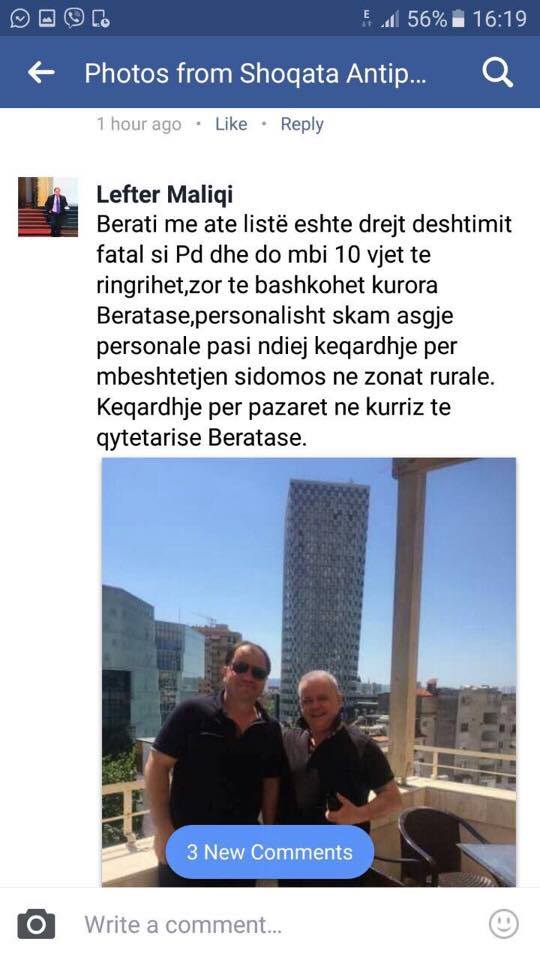 Nëse ju nevojitet shihni 5 videot e hedhura sot në fb tim më poshtë me takimet entuziaste madheshtore ne plot zona te tjera me liderin Berisha qe u kthyen nga 18% ne 60% të djathta.!Unë smund ti takoj dot pa ju. Ju lutem më lini ditën dhe orën sa më shpejt per miting ???!!!”shkruan Maliqi.