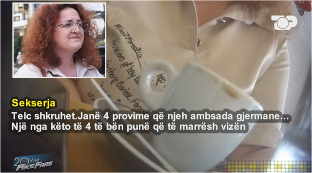 Fiksi solli 2 takime mes sekseres dhe bashkëpunëtores së emisionit investigative, biseda në të cilat Rexhina shprehet se provimi merret në Gjermani, në provim nuk hyn vetë individi por do hyjë dikush tjetër për të. Këtë gjë ajo tregon se e bën prej 7 vitesh, vetëm shatorin e kaluar kanë marrë dëshminë në këtë mënyrë 100 persona.