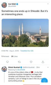 Bildt duket se këtë verë një udhëtim e ka çuar në Shkodër, ku ka postuar një foto ku