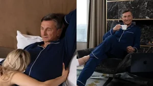 Konkretisht, fotot e tij duke pozuar me pizhame, me një pamje të relaksuar si në shtëpi, u shfaqën në profilet e tij zyrtare në Facebook dhe Instagram, por fotoja që shkaktoi më shumë diskutime ishte ajo në të cilën ai pozon në shtrat ndërsa përqafon një bjonde pa bluzë.