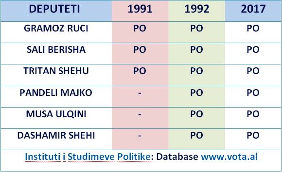 Ishin, janë dhe do jenë! E nisën jetën parlamentare më 1991-1992 dhe vijojnë të kenë mandate parlamentare edhe më 2017-2021. Vetëm 6, tre të majtë dhe tre të djathtë. Berisha, Ruçi e Shehu nga 1991; Majko, Ulqini dhe Shehi më 1992. Ruci ka bërë një ndërprerje më 1996, Berisha pa ndërprerje, Shehu bëri shkëputje më 2001 dhe 2013, Ulqini pati një ndërprerje në mandatin e parë të Ramës dhe Shehi gjithashtu me disa vite ndërprerje pas ndarjes nga PD. Por kanë mbetur në lojë dhe sot janë drejtues në parti ose aktiv në politikë.