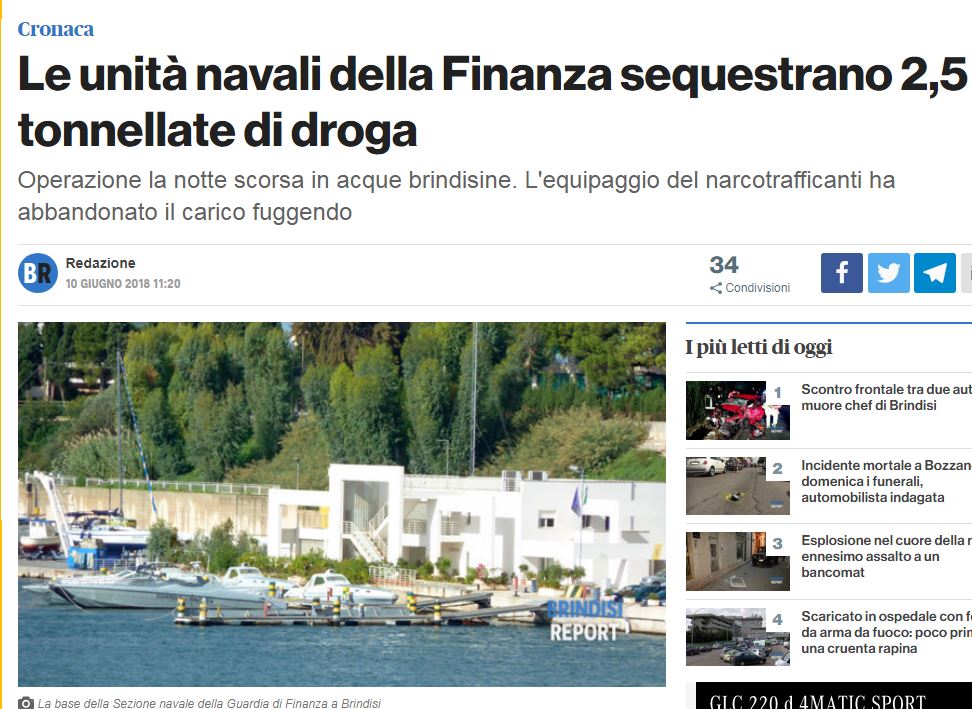 ITALI-Policia italiane ka ndërmarrë një operacion në brigjet e Salento në Brindizi, ndërsa ka sekuestruar rreth 2,5 ton marijuanë e cila dyshohet se kishte ardhur nga Vlora.