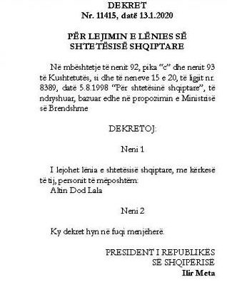 Gjermania ka nxjerrë ligjin që kush ka dy nënshtetësi apo më shumë, duhet të zgjedhë vetëm një. Lala ka zgjedhur nënshtetësinë gjermane, kjo edhe për faktin se ai ka biznesin e tij atje, plus si menaxher lojtarësh Gjermani i jep më shumë përparësi.