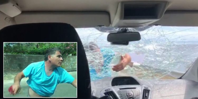Mihal Kokëdhima, në një mënyrë krejtësisht të çmendur, i është hedhur me trup furgonit ku ai së bashku me familjen e tij, dhe teksa automjeti ishte në ecje ai godiste me grushte xhamin e përparmë duke e thyer atë. /e.s/
