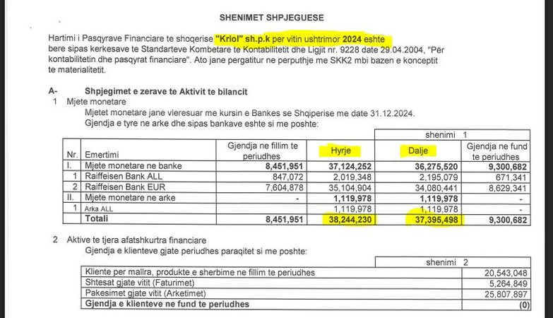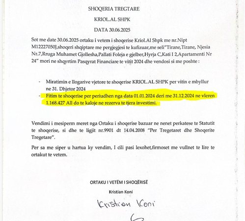 Redaksia jonë shfletoi edhe bilancet e fundit të kompanisë Kriol.al, ku rezulton se ka xhiruar qindra mijëra euro, pavarësisht se nuk ka ndonjë aktivitet të mirëfilltë. Dyshimet janë se pronarët dhe administratorët kanë krijuar një rrjet kompanish që bëjnë vetëm fatura furnizimi, por që në fund fitimet janë minimale. Në vitin 2024, sipas dokumenteve, Kriol.al ka dalë me një fitim prej rreth 12 mijë eurosh. Pra, 1 mijë euro në muaj.