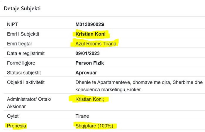Apo të shohë se me cilat firma apo biznese bashkëpunon Meta (Koni) që ka marrë apartamente dhe dhoma me qira. Aq i fuqishëm është ky individ, që ka filluar të xhirojë miliona euro, dhe ka hapur biznese të pafundme? Madje me nipte sekondare, ku të gjitha të dhënat të çojnë të pastrimi i parave.