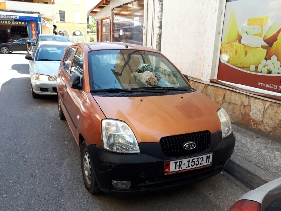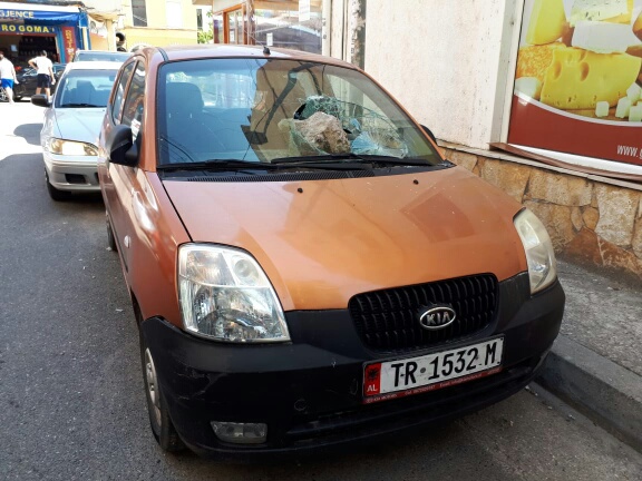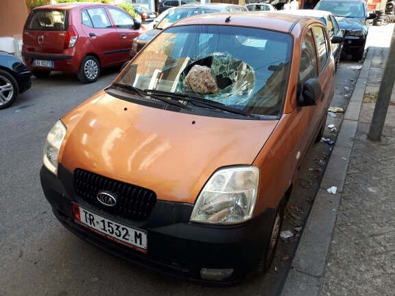 Nje gur i madh eshte hedhur ne drejtim te xhamit te parme te makines se tij.