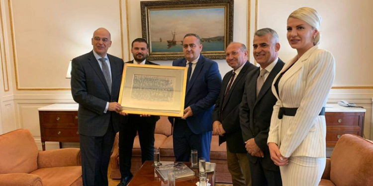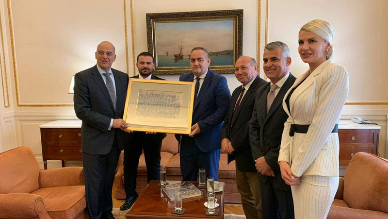 Përfaqësues të OMONIA-s i kanë dhuruar Ministrit të Jashtëm grek Nikos Dendias një fotografi të vitit 1909.