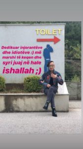 ‘Dedikuar injorantëve dhe idiotëve; më marshi të keqen dhe syri juaj në hale; Ishallah!’, shkruan ai mbi foton.