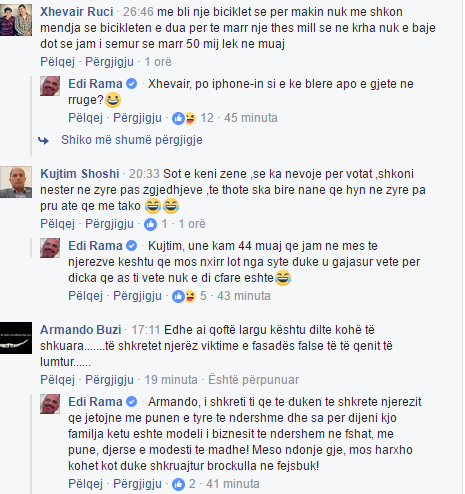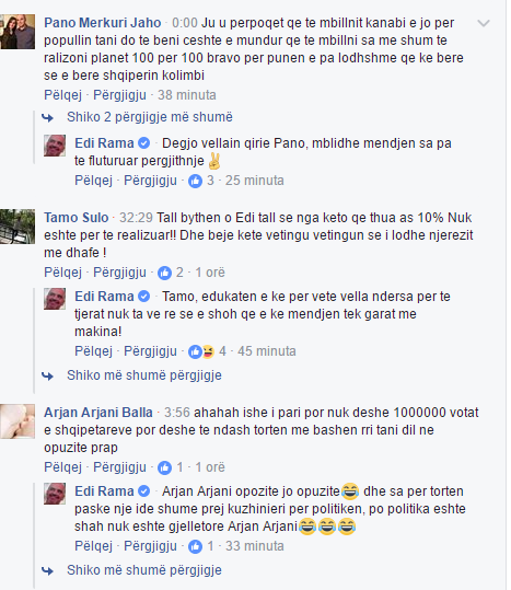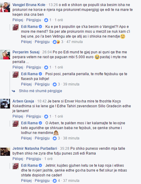 Postimi i fundit i Kryeministrit ka pasur shumë replika mes tij dhe ndjekësve që i komentonin në faqen e facebook.
