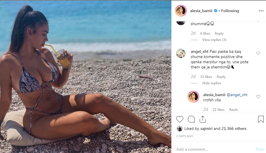 Duket se Alesia Bami e ka marrë me shumë sportivitet këtë koment dhe pa u revoltuar, apo thurur ndonjë mesazh, ish-velina ja mbyll gojën me dy fjalë: “Rrofsh vlla”.