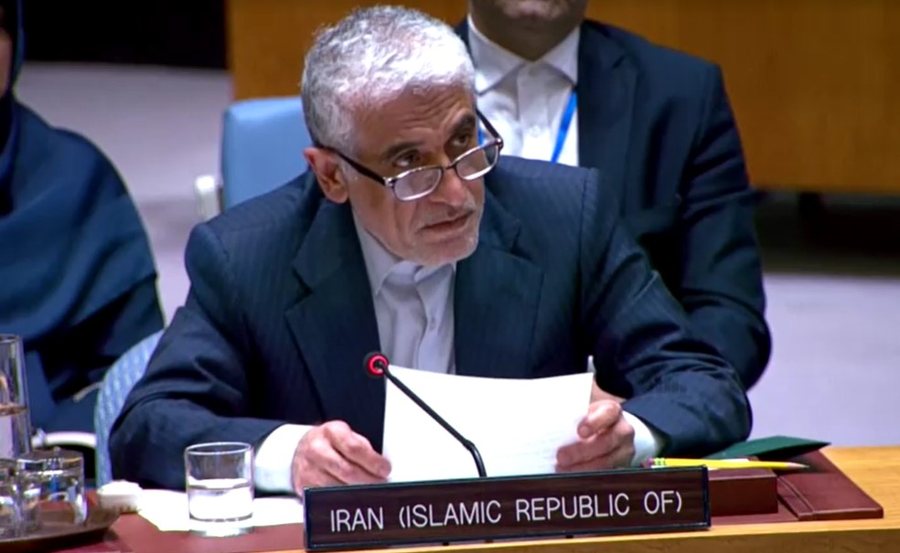 Ambasadori i Iranit në OKB, Amir Saeid Iravani, deklaroi se Irani do të vazhdojë të “ushqejë të drejtën e vet për vetëmbrojtje” për aq kohë sa të jetë e nevojshme, duke akuzuar Izraelin dhe aleatët e tij për shkelje të ligjit ndërkombëtar me sulmet ndaj Iranit dhe duke i bërë thirrje këshillit të veprojë.