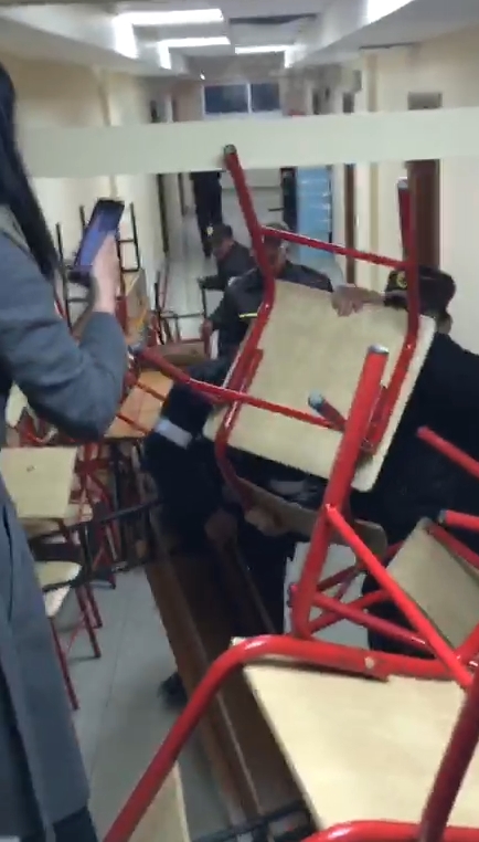 Është tensionuar situata tek Fakulteti i Drejtësisë gjatë orëve të vona të natës. Policia private që ruan ambientet e Fakultetit ka ndërhyrë duke hequr bankat e vendosura nga grupi i studentëve gjatë ditës për të bllokuar korridoret me synim për të mos lejuar studentët e tjerë që të hynin në auditore për të bërë mësim.