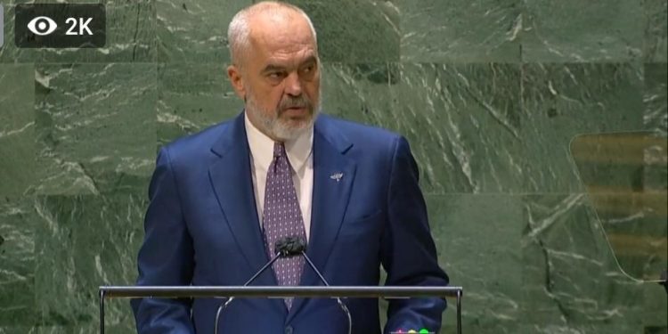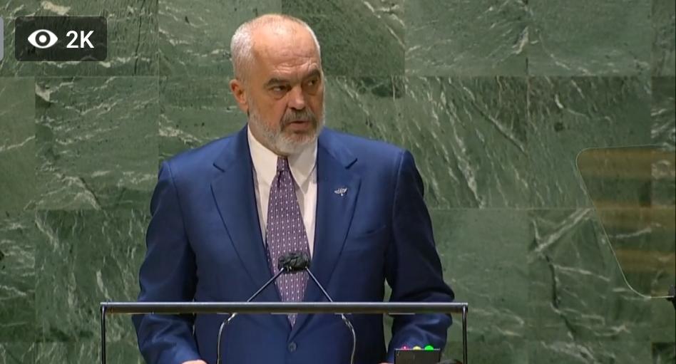 Kryeministri Edi Rama po mban fjalën e tij në Asamblenë e Kombeve të Bashkuara, duke vënë theksin te disa nga sfidat kryesore në botë sot.