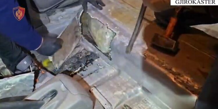 Në pranga ka rënë 30-vjeçari N. P., banues në fshatin Rusan, Delvinë, i cili transportonte lëndën narkotike të fshehur në një hapësirë të improvizuar tek shasia e automjetit tip Nissan.