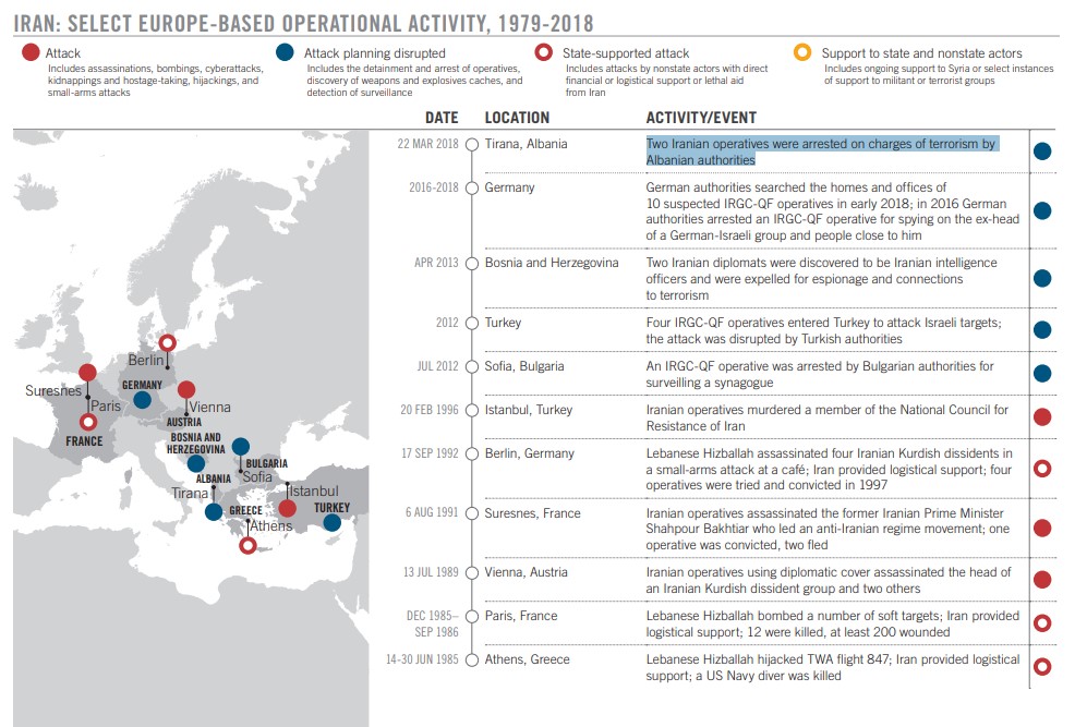 Reagimi zyrtar i Teheranit vjen si një kundërpërgjigje ndaj Sekretarit Amerikan të Shtetit Mike Pompeo, i cili disa muaj pas arrestimit publikoi raportin e Departamentit të Shtetit për aktivitetin e iranianëve në Europë. Në raport theksohet se në datën 22 mars 2018, 2 operativë iranianë janë arrestuar në Shqipëri me akuzën e terrorizmit.