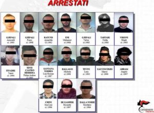 Policia italiane ka shkatërruar një organizatë kriminale, duke vënë në pranga 17 persona, 8 prej të cilëve shqiptar, ndërsa një tjetër person u shpall në kërkim.