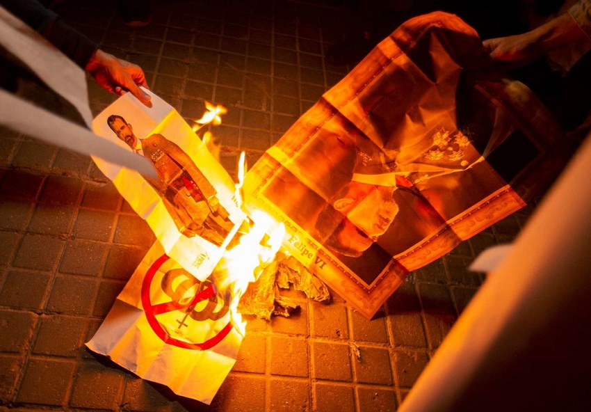 Disa mbanin në duar parulla me mbishkrimin “Katalonja nuk ka monark”, ndërsa të tjerë dogjën portretin e Mbretit Felipe.