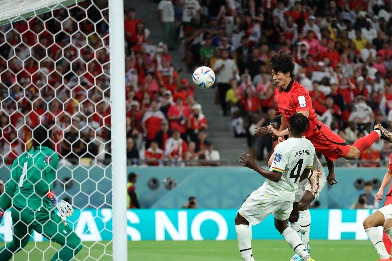 Lojtari që aktivizohet në rradhët e Ajaks u shfaq i lirë brenda zonës dhe me një goditje me kokë mposhti portierin Kim. Me avantazhin e dy golave në favor të Ganës u mbyll pjesa e parë, ndërsa në fraksionin e dytë, koreano-jugorët u futën në fushë me një tjetër mentalitet. Aziatikët gjetën golin e parë në minutën e 58-të, falë realizimit të Gue-Sueng që realizoi me kokë pas një harkimi nga krahu i majtë. Vrulli i Koresë vijoi edhe pas golit, teksa tre minuta më pas, gjetën edhe golin e barazimit sërish me të njëjtin autor që sërish i “rrëshkiti” mbulimit të mbrojtjes kundërshtare. Megjithatë, Gana e kaloi shpejt “ngërçin” dhe në minutën e 69-të u rikthyen në avantazh. Ishte sërish sulmuesi Kudus që realizoi për të tijtë teksa me një goditje preçize brenda zone nuk i la shumë shans reagimi portierit Kim.