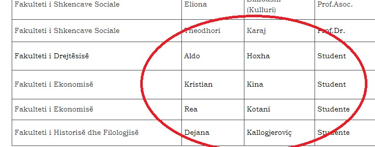 4- Aldo Hoxha, përfaqësues i fakultetit të drejtësisë.Siç duket qartë, LRI ka kapur organet vendimarrëse të studentëve, për të mos përfaqësuar asnjë interes studentor. Por ajo që është më skandaloze, kapja nga LSI e strukturave kolegjiale të universitetit, tregon se edhe protesta që nisi si e studentëve, mund të jetë ngjizur nga po të njejtët ushtarë partie që fshihen pas strukturave të studentëve.