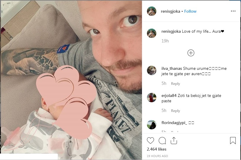 Krej papritur, Renis Gjoka ka treguar se është bërë baba për herë të parë. Në një foto të publikuar në Instagram, Renisi shfaqet më të bijën, të cilën e kanë pagëzuar me emrin Aura.