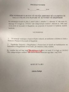 Por ky propozim nuk u votua nga anëtarët demokratë të Këshillit Bashkiak, të cilët braktisën mbledhjen. Vendimi u mor vetëm me votat e këshilltarëve të majtë.Erion Veliaj kishte propozuar vendosjen e bustit të Pjetër Arbnorit me kërkesë të Kuvendit të Shqipërisë, në mjediset e lulishtes para sallës ku zhvillohen seancat plenare.