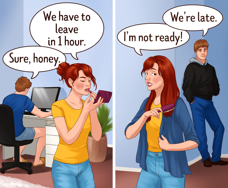 Përmes disa fotosh komike, Bright Side hedh një vështrim në dallimet midis burrave dhe grave. Më poshtë jepen disa situata, në të cilat gjithkujt nga ne i ka qëlluar të ndodhet të paktën një herë.