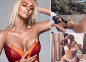 Kim Kardashian nuk njihej me pamjen e re, flokë bjonde dhe një korse të kuqe, i gjithë ky ndryshim për linjën e saj më të re të make up-it.