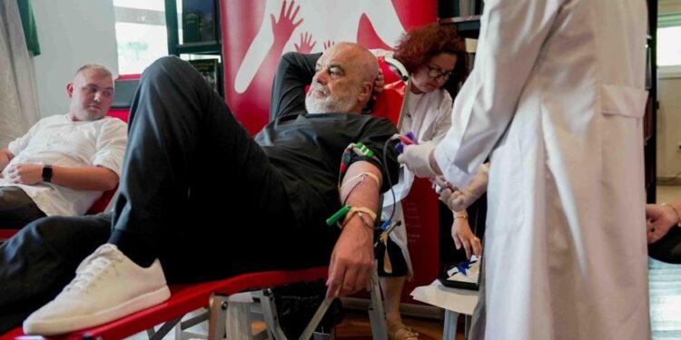 Kryeministri Edi Rama, së bashku me stafin e Kryeministrisë, i janë bashkuar sot zinxhirit të solidaritetit për dhurimin vullnetar të gjakut.