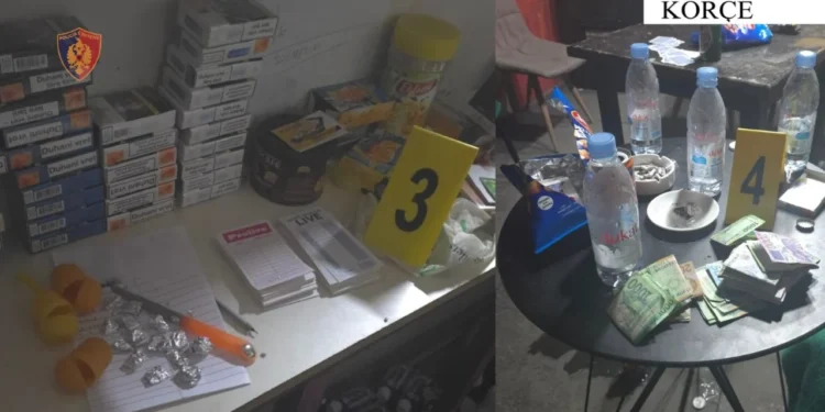 Një 57-vjeçar është arrestuar në fshatin Bulgarec të Korçës pasi kishte përshtatur lokalin e tij për organizimin e lojërave të paligjshme të fatit si dhe për shitje dhe konsum droge.