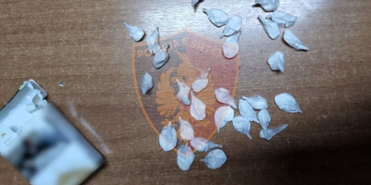 Policia thotë se gjatë kontrollit të L. D., iu gjet dhe sekuestruan, lëndë e dyshuar narkotike cannabis sativa, e ndarë në dhjetëra doza, gati për shitje.