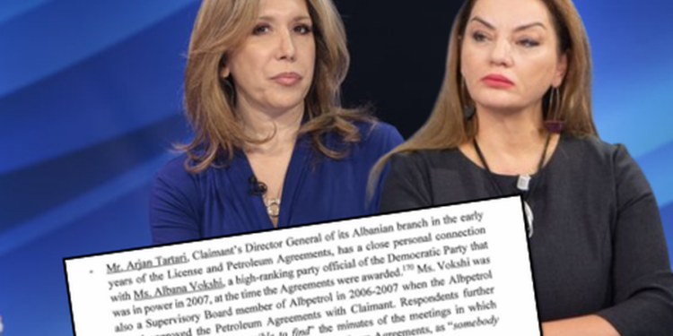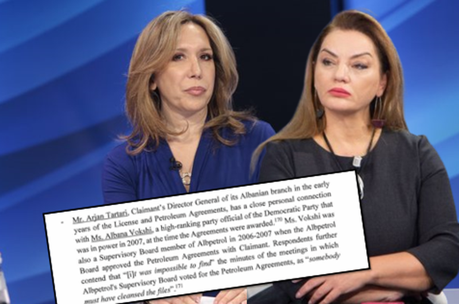 “Z. Arjan Tartari, Drejtori i Përgjithshëm i degës së saj në Shqipëri i Paditësit në vitet e para të Marrëveshjeve të Licencës dhe Naftës, ka një lidhje të ngushtë personale me znj. Albana Vokshi, një zyrtare e lartë partiake e Partisë Demokratike që ishte në pushtet në vitin 2007, në kohën kur u dhanë Marrëveshjet. Znj. Vokshi ishte gjithashtu anëtare e Bordit Mbikëqyrës të Albpetrol në vitet 2006-2007 kur Bordi i Albpetrol miratoi Marrëveshjet e Naftës me Paditësin. Të anketuarit pohojnë më tej se “[ishte] e pamundur të gjendeshin” procesverbalet e mbledhjeve në të cilat Bordi Mbikëqyrës i Albpetrol votoi për Marrëveshjet e Naftës, pasi “dikush duhet t’i ketë pastruar dosjet”./TemA