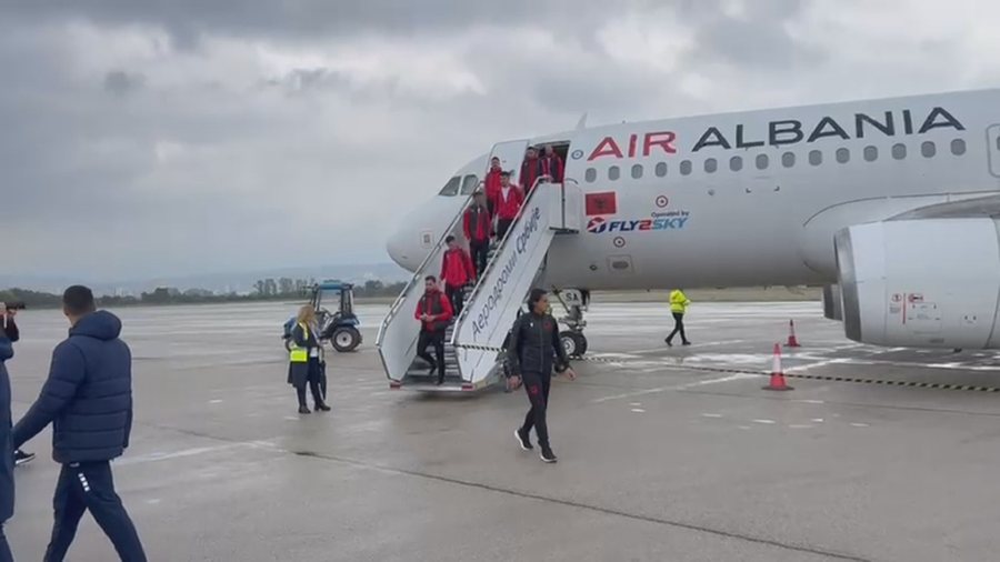 Në orën 12:28 minuta avioni i kompanisë “Air Albania”, i pagëzuar si Naimi, u nis nga pista e aeroportit të Rinasit me kombëtaren e Shqipërisë në bord, për të fluturuar drejt Serbisë.